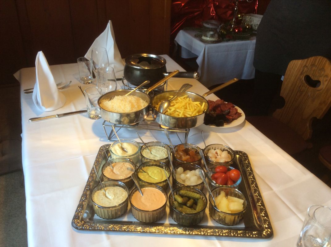 Unser Käsefondue wird mit erstklassigem Gruyere und Vacherin liebevoll zubereitet